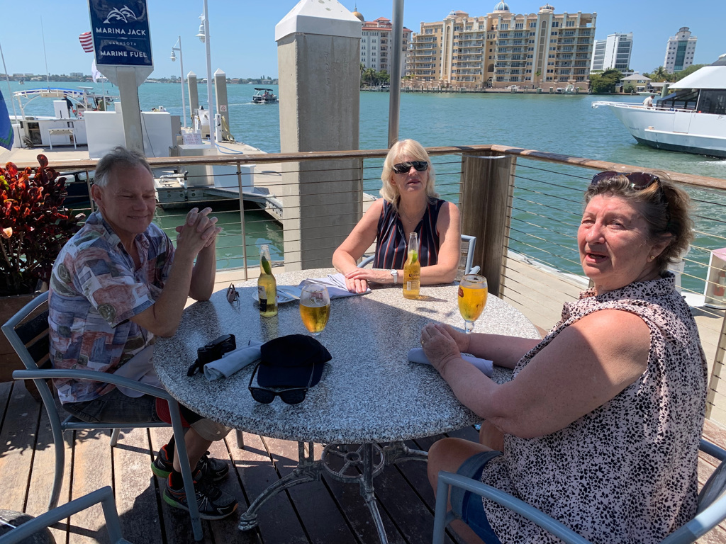 Howdy ya' ll,, jodå vi är kvar :) visst har vi funderat på att försöka ta oss hem, men resealternativen är inte dom bästa just nu. Dyrt, lite märkliga rutter, många byten, långa uppehåll- så vi stannar. Solen skiner och det är varmt och skönt. Stränderna har varit öppna fram till nu och även restaurangerna men nu börjar dom stänga. Vi åker på utflykter, häromdagen till Tarpon Springs, en by med grekiska tavernor, affärer som säljer tvättsvampar och broderade tunikor o klänningar. Gamla tanter och farbröder som sitter och pratar grekiska, på bänkarna. En tur till Sarasota, en väldigt nobel stad, vilka båtar i marinan, inget man ens vågar drömma om som fattig pensionär men maten på restaurangen var fantastisk. En promenad på morgonen, en tur till stranden och sedan affären för att leta " toapapper" vår nya gimmik - joodå det är slut här också fast vi förstår inte riktigt varför.!? Fågelungarna på stolpen nedanför vårt fönster växer, föräldrarna jobbar hårt, ungarna är aldrig nöjda precis som det brukar vara. Det blev väl inte riktigt som vi tänkt oss men vi har det bra :)