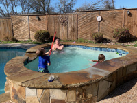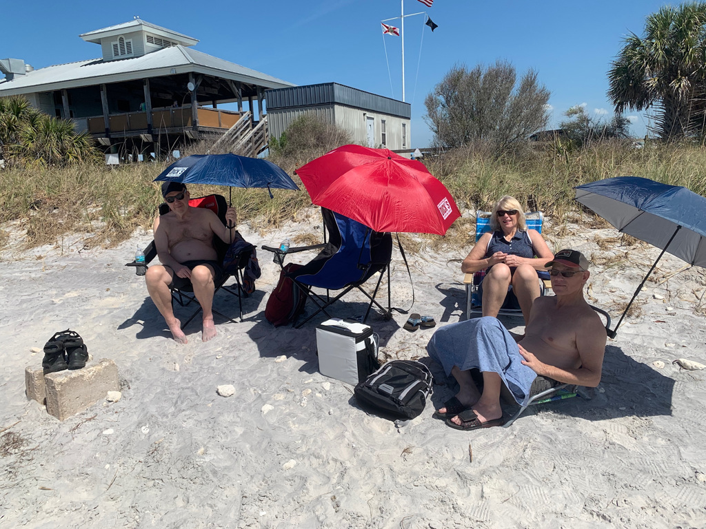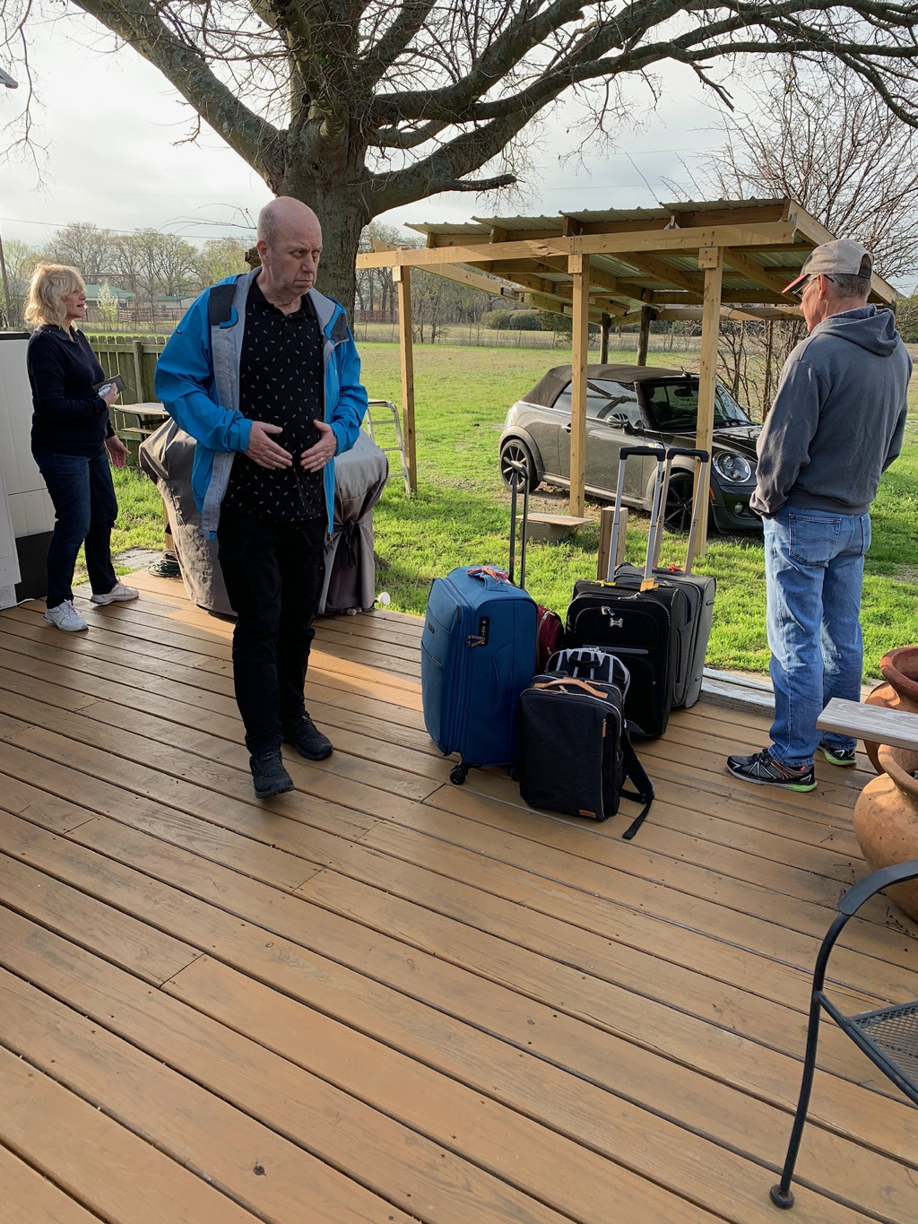 Tillbaka i Mc Kinney blev det några dagar med förberedelser - för roadtrip #2 och för Florida vistelsen. Det snickrades och målades bord till rv'n, vi var inte nöjda med det som fanns och ytterligare en plåt sattes upp på "carporten". Vi fikade i solen och barnen badade i bubbepoolen. Det shoppades lite också fast mest under förevändningen att vi letade jeans till Tommy och så packade vi igen. Vi hann med ett restaurangbesök och fick smaka på den fantastiska " lökblomman" såååå gott. Alicia, Johans fru körde oss ner till Dallas- Fort Worth, tidig torsdag morgon. Lugnt på flygplatsen och lugn flygning ner till Tampa. Så nu har vi blivit "Floridians" och tänker njuta av sol o värme i tre veckor eller... hur länge det nu blir vi får se om Trumpen låter oss åka tillbaka till Texas eller om vi blir här foreverer - ingen dålig tillvaro..... föresten löste ni frågan om hur många som får plats i en mini? och nej det är inte sviterna av lökblomman som gör att Bengt ser bekymrad ut :)