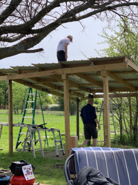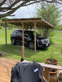 Sen eftermiddag 27/3, var vi tillbaka i hemmets lugna vrå, i alla bemärkelser Här i Dallas hade utegångsförbudet trätt i kraft och bara nödvändiga ärenden fick uträttas, vilket betydde att vi fick åka och handla mat inget annat. Åh varför lyssnade jag på mina kamrater som sade att "shopping, det tar vi sista veckan, när vi kommer hem från Kalifornien" - så det blev inga cowboyboots den här gången eller jeans eller handväskor eller...........!!!!!! Nåja när världen blivit normal igen får vi väl åka tillbaka och handla :) men jag hann ju faktiskt prova och vet nu att storlek 9 1/2, skaftvidd B faktiskt passar alldeles utmärkt. McKinney hade blivit så mycket grönare på dom 16 dagar vi varit i Florida, det hade kommit kopiösa mängder regn så gräset hade växt och träden var påväg att slå ut - dags att starta vårbruket, gräsklippning och grenkapning, bygga färdigt carporten och inviga bordet som byggts till RV´n.